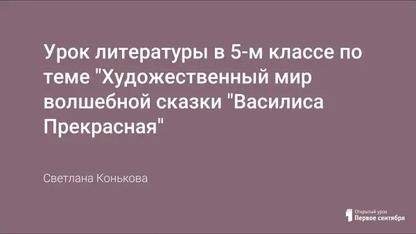 Цели урока: развитие эмоционального восприятия художественного текста, освоение текстов художественных произведений в единстве формы и содержания; знание понятия "художественный мир" сказки и его составляющих; овладение умениями чтения и анализа художественных произведений с привлечением базовых литературоведческих понятий; воспитание любви и уважения к литературе и ценностям отечественной культуры.