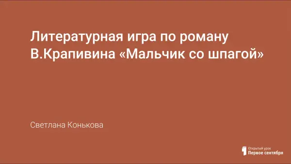 В методическую разработку включён материал районного мероприятия по роману В.Крапивина «Мальчик со шпагой». В литературной игре принимают участие 5 команд по 5 человек, сформированных из учащихся 6-х классов. Автором сформулированы цели игры, представлены конкурсные задания, включена презентация.