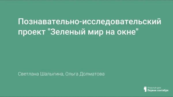 Познавательно-исследовательский проект "Зеленый мир на окне"