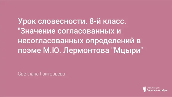 Цели урока: обобщить знания детей об определении; выработать навык разграничения согласованных и несогласованных определений; выявить значение определений в поэме М.Ю. Лермонтова "Мцыри"; развивать речь, память, умение восстанавливать причинно-следственные связи; воспитывать интерес к литературе, любовь к языку, языковое чутье.