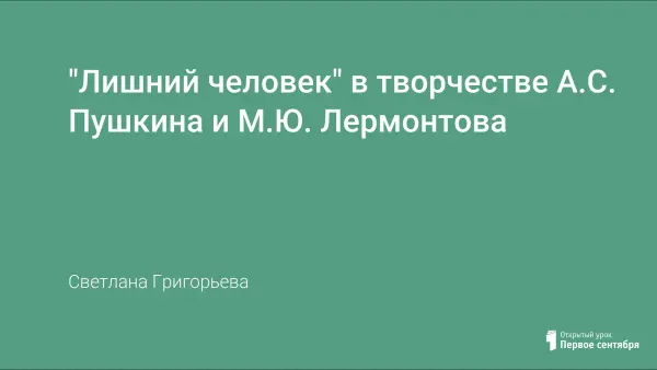 На уроке объясняется литературоведческое понятие «лишний человек». Формулируются предпосылки появления лишних людей и указываются их общие черты. Учащиеся знакомятся с представителями лишних людей на примере произведений А.С. Пушкина «Евгений Онегин» и М.Ю. Лермонтова «Герой нашего времени».