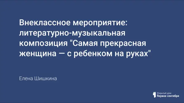 Предлагаемая разработка литературно-музыкальной композиции для 9–11-x классов пополнит копилку классных руководителей, организаторов по воспитательной работе, старших вожатых. В сценарии этой литературно-музыкальной композиции заложены идеи патриотического воспитания школьников, воспитания доброго и нежного отношения к матери, а также интересные находки организаторов.