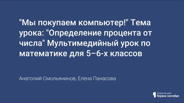"Мы покупаем компьютер!" Тема урока: "Определение процента от числа" Мультимедийный урок по математике для 5–6-х классов