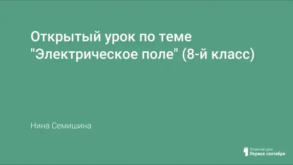 Урок разработан для 8-го класса физико-математического профиля. Основная цель урока: сформировать представления учащихся об электрическом поле и его свойствах. В течение урока планируется использование следующих средств: 1) доска, 2) видеоматериал, 3) демонстрационный опыт.