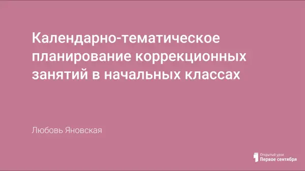 В данной работе представлено календарно-тематическое планирование коррекционных занятий в начальных классах, целью которых является не только повышение общего, интеллектуального уровня развития, но и решение конкретных задач предметной направленности: подготовка к восприятию трудных тем учебной программы, ликвидация пробелов предшествующего обучения.