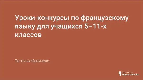 Одним из видов итогового контроля языкового и страноведческого материала являются уроки-конкурсы. Что это за уроки? Это последний урок французского языка в каждом учебном году во всех классах (с 5-го по 11-й). Учащиеся подводят итог того, чему они научились в очередном учебном году. Выявляется лучший по предмету в каждом классе.