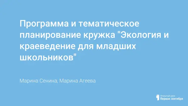 Программа и тематическое планирование кружка "Экология и краеведение для младших школьников"