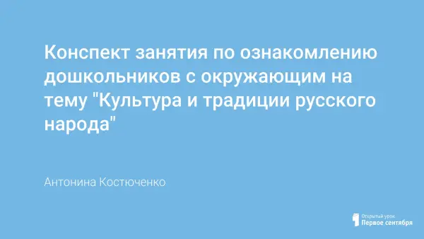 Конспект занятия по ознакомлению с окружающим миром в старшей группе, на котором дошкольники знакомятся с традициями русского народа. Занятие помогает закрепить знания детей о названии страны, в которой они живут, о ее природе, некоторых событиях, культуре, а также воспитывает любовь к Родине, к русскому народу, уважение к его традициям.