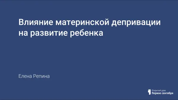 Семья является важнейшим условием нормального развития, она дает ребенку модели надежного и стабильного мира с возможностью постоянной привязанности. Материнская депривация возникает при недостаточной привязанности матери к ребенку, при длительной разлуке, при отсутствии материнского воспитания с младенчества или при утрате матери в более позднем возрасте. Длительная разлука с матерью негативно влияет на психическое и физическое развитие детей.