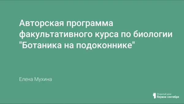 Факультативный курс «Ботаника на подоконнике» - это программа обобщения, закрепления и расширения знаний о растениях, предназначенная для биологического образования учащихся 6–7-х классов. Помимо общего знакомства с миром комнатного цветоводства, дети получают знания по экологии, географии, физиологии, морфологии, анатомии и систематике растений.