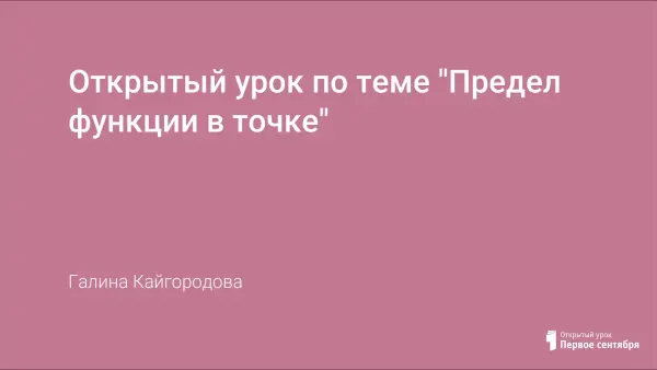 Урок открытия знаний, на котором учащиеся знакомятся с понятиями: "предел функции в точке"; "функция непрерывна в точке и на промежутке". В итоге учащиеся должны научиться находить предел функции в точке; определять непрерывность функции в точке и на промежутке.