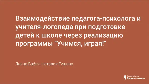 Взаимодействие педагога-психолога и учителя-логопеда при подготовке детей к школе через реализацию программы "Учимся, играя!"