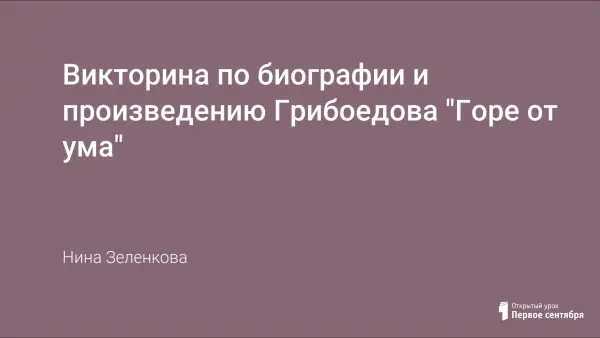 Урок рекомендуется для обобщения и проверки знаний, полученных по окончании изучения творчества А.С. Грибоедова в курсе литературы за 9-й класс. Урок построен по принципу игры «Умники и умницы» и призван совершенствовать коммуникативные умения, развивать познавательные интересы и творческие способности.