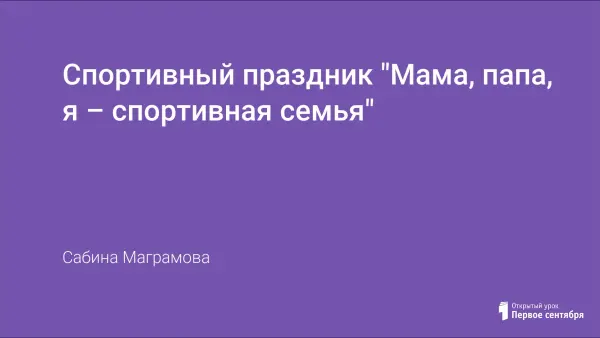 Там, где царит атмосфера уважения, дружбы, взаимопонимания, – там всегда праздник. В каждой семье есть нежность, красота женщины, сила и мужество мужчины, а ведь люди говорят: «Хочешь быть здоровым – занимайся спортом», «Хочешь быть красивым – занимайся спортом». И не надо забывать одну мудрую пословицу: «В здоровом теле – здоровый дух».