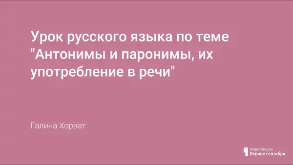 На уроке идет повторение сведений об антонимах и их видах, ознакомление с таким языковым явлением, как паронимия. Учитель закрепляет у учащихся умение определять антонимы и использовать их в речи; совершенствует умение определять паронимы в речи. Дети учатся находить антонимы и паронимы и использовать их самостоятельно в собственной речи.