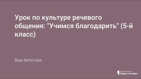 Низкая культура общения волнует сегодня многих. Поэтому мною спланирован цикл уроков по этой проблеме. Цель урока — научить благодарить в разных жизненных ситуациях; воспитывать культуру речевого общения в школе, семье, общественных местах. Автором разыгрываются разные ситуации. Обучающиеся составляют диалоги, проводят исследовательскую работу, решают творческие задачи, приобретают навыки работы со словарной статьей.
