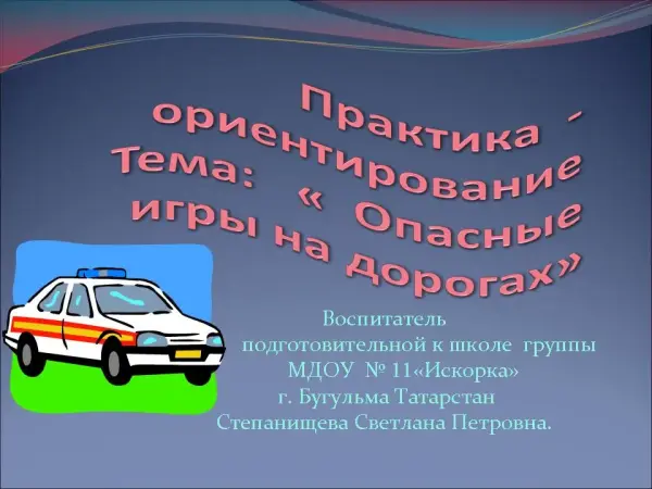 Презентация. Тема: "Опасные игры на дорогах"
