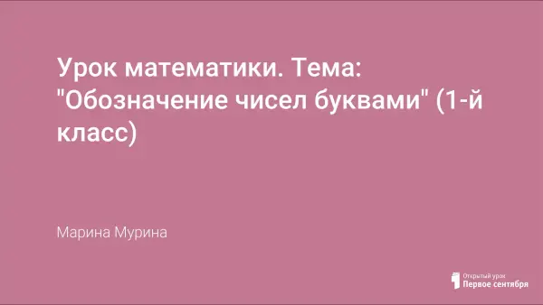 Урок математики в 1-м классе по теме "Обозначение чисел буквами" (система Д.Б. Эльконина – В.В. Давыдова). Урок является частью раздела "Разностное сравнение величин. Сложение и вычитание чисел". Процесс измерения величин отражается на специальной модели — числовой прямой. На уроке дети учатся обозначать на числовой прямой числа буквами, сравнивать их и выполнять действия сложения и вычитания.