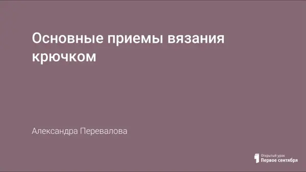 Работа содержит конспект урока «Основы вязания крючком» для учащихся 7-го класса с презентациями. В ходе урока учащиеся знакомятся с образцами вязания крючком; проводят сравнение изделий, связанных спицами и крючком; определяют область применения изделий; учатся правилам набора петель и вязанию столбика без накида, знакомятся с условными обозначениями, способствует развитию интереса к изучаемому предмету.