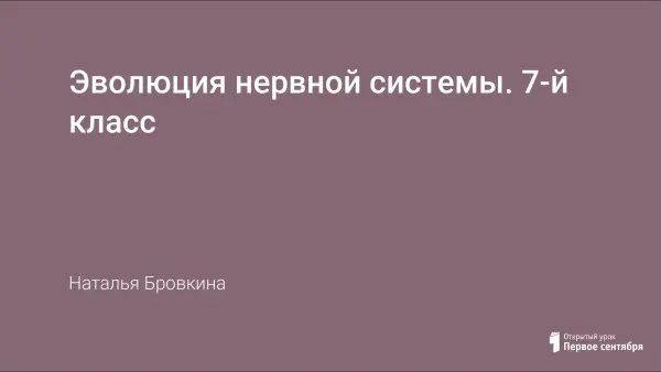 Урок направлен на изучение особенностей строения нервной системы у разных групп животных и на формирование представления об эволюционном изменении нервной системы. Изучение нервной системы животных сопровождается презентацией и демонстрацией ЦОР.