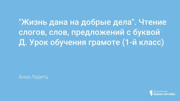 Цели: совершенствовать навыки чтения слогов, слов, предложений с буквой Д; развивать фонематический слух и речь учащихся; обогащать словарный запас детей, расширяя знания об окружающем мире; побуждать детей проявлять качество доброты в социуме. Творческое задание: страничка "Книги доброты".