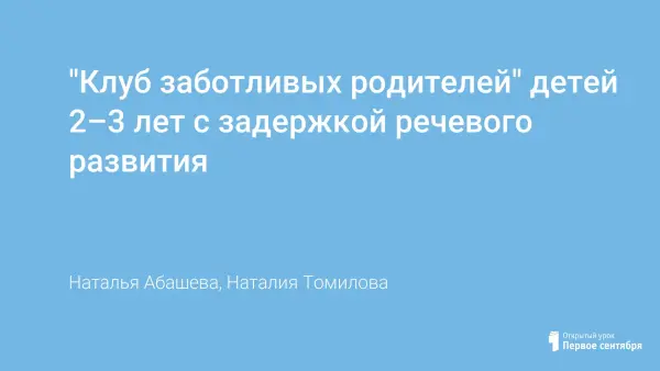 "Клуб заботливых родителей" детей 2–3 лет с задержкой речевого развития