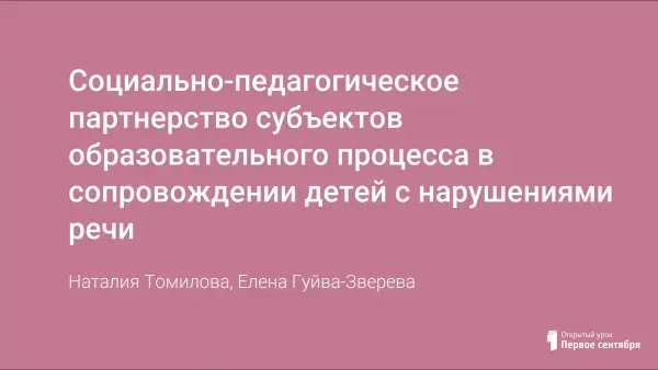 Социально-педагогическое партнерство субъектов образовательного процесса в сопровождении детей с нарушениями речи