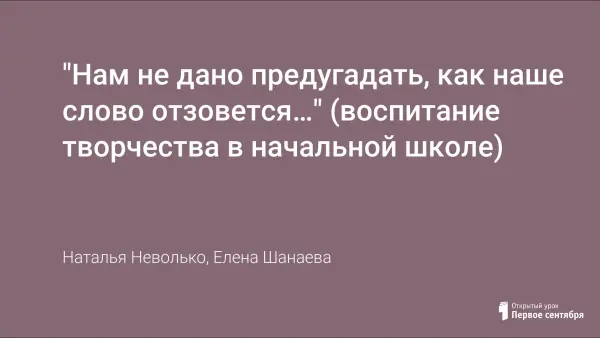 "Нам не дано предугадать, как наше слово отзовется…" (воспитание творчества в начальной школе)