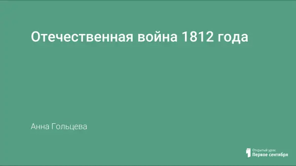Урок-презентация, показывающий Отечественную войну 1812 года как одно из ярчайших событий в истории России. Ученики знакомятся с легендарными русскими полководцами и военачальниками, лидерами французской армии.