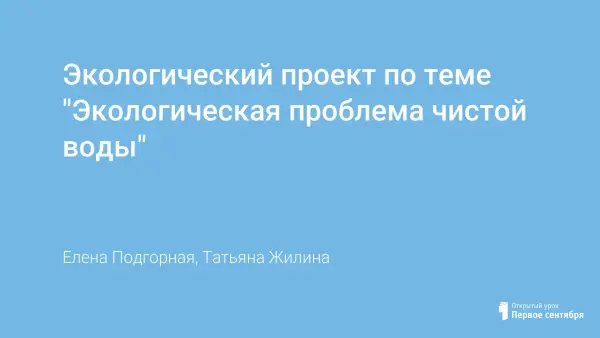 Экологический проект по теме "Экологическая проблема чистой воды"