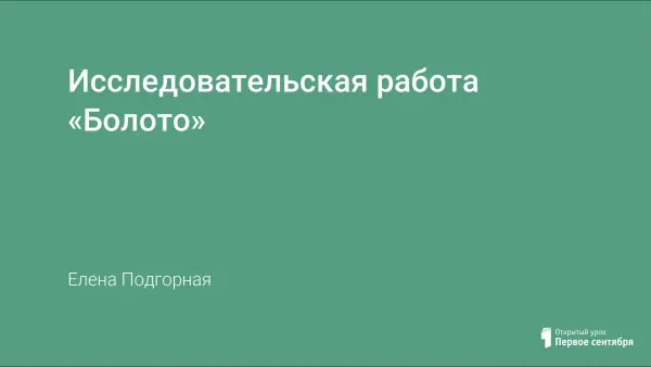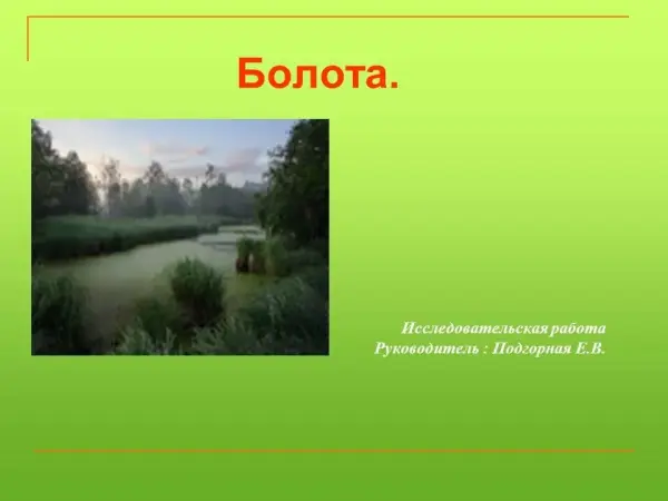Цель: изучение различных источников информации о происхождении болот; изучить роль и значение болот; воспитывать бережное отношение к природе.