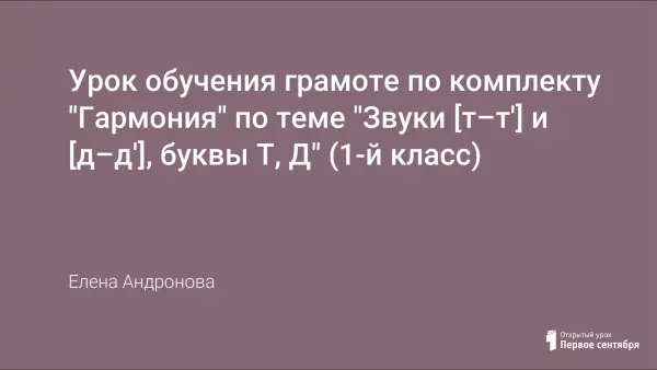 Урок по программе "Гармония" по "Азбуке" авторов Н.М. Бетеньковой, В.Г. Горецкого, Д.С. Фонина. Единая сюжетная линия объединяет этапы всего урока. Главной исследовательская работа, в ходе которой учащиеся делают вывод о парных согласных звуках [т-т'] и [д-д'] и буквах, которыми они обозначаются. В урок включены задания поискового характера, развивающие интеллект.