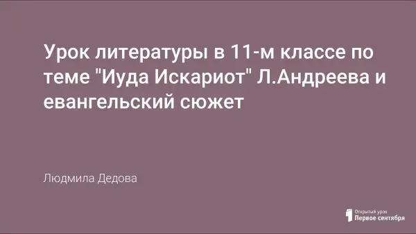 Урок литературы в 11-м классе, целью которого является понять, почему Л.Андреев, создавая свой рассказ "Иуда Искариот", уходит от традиционного толкования евангельского текста. Почему его Иуда такой "раздвоенный"? Дать свой ответ на вопрос: почему Иуда предал Христа?