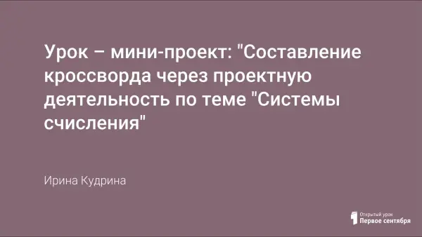 Данная статья представляет собой мини-проект: составление кроссворда через проектную деятельность по теме «Системы счисления» в 10-м классе, рассчитанный на один урок. Дается поэтапное описание урока. В приложении 3 есть технологическая карта проекта, которая и является алгоритмом составления проекта. Работа может быть интересна учителям информатики и обучающимся в профильном классе.