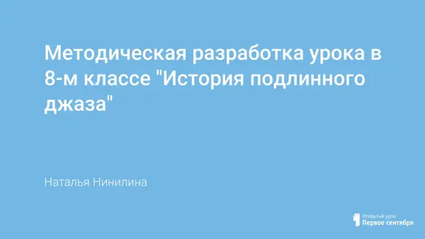 Предлагается методическая разработка урока для учащихся 8-го класса. Подробное знакомство учащихся с особенностями возникновения джазовой музыки.