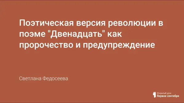 С момента своего появления поэма А. Блока «Двенадцать» вызывала литературные и идеологические споры. Этот урок – попытка осмыслить самое загадочное произведение поэта.
