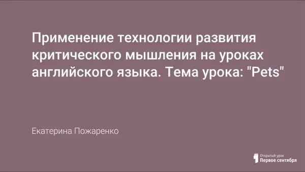 Цель урока: обобщить и систематизировать знания по теме «Pets»; развивать навыки чтения в рамках тематической ситуации; развивать навыки и умения монологической речи.