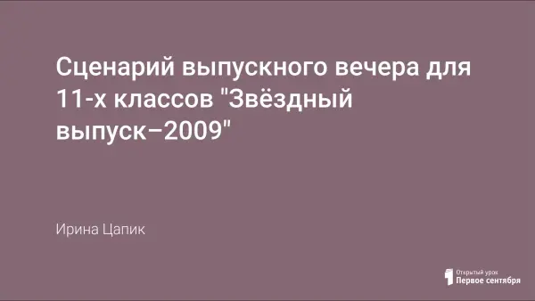 Выпускной вечер для каждого одиннадцатиклассника – самый долгожданный и волнующий праздник. Данный сценарий выпускного вечера поможет сделать это событие не обыденным моментом вручения аттестатов, а светлым воспоминанием о школе. Поздравления, песни, танцы сделают праздник интересным; показ презентации вернет выпускников в детство и сделает вечер запоминающимся.