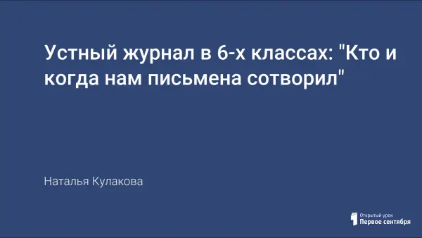 Устный журнал знакомит учащихся с историей славянской письменности, рассказывает о первопросветителях славянского народа – братьях Кирилле и Мефодии. Обращает к национальному и культурному наследию русского народа, направленному на формирование духовных и нравственных качеств учащихся, воспитывает чувства ответственности и любви к русскому языку.