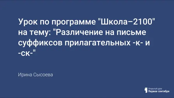 Цели урока: повторить изученные ранее орфограммы и пунктограммы, порядок синтаксического разбора, совершенствовать навыки разбора слов по составу и словообразовательного разбора; организовать самостоятельное выявление учащимися условий выбора новой орфограммы буквенного типа; научить различать на письме суффиксы прилагательных -к- и -ск-.