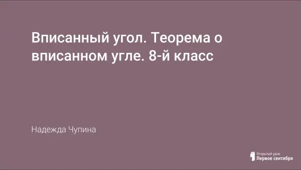 Цели урока: сформировать понятие вписанного угла, изучить теорему о вписанном угле; сформировать навыки самостоятельной работы с учебником.