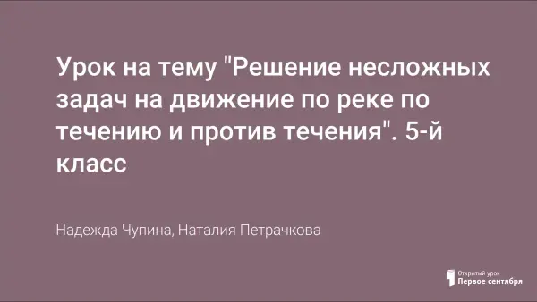 Урок на тему "Решение несложных задач на движение по реке по течению и против течения". 5-й класс