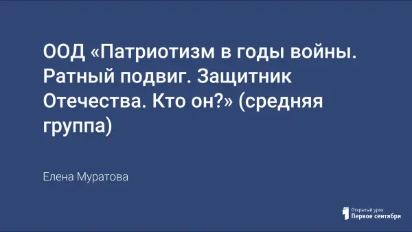 Цель занятия: воспитание патриотических чувств. Задачи: создать у детей настроение сопереживание прошедшим событиям Великой Отечественной войны; расширять представления, знания детей о Великой Отечественной войне, используя ИКТ; познакомить с героями войны; закрепить навыки речевой деятельности на патриотическом материале; активно участвовать в диалоге с воспитателем.