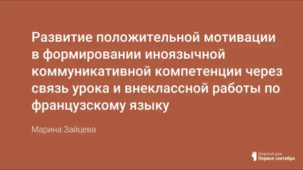 Важнейшим фактором, стимулирующим процесс иноязычного речевого общения, следует считать мотивацию усвоения иностранного языка. Интеграция урочной и внеклассной деятельности способствует более полному развитию личности ученика, повышению мотивации. Конкурс «Французский эрудит» способствует развитию коммуникативной компетенции учащихся, повышению интереса и мотивации к предмету, развитию познавательных интересов учащихся, обобщению знаний о культуре страны изучаемого языка.