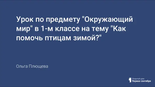 Основной задачей урока является знакомство детей с зимующими и кочующими птицами, правилами изготовления кормушек и подбора корма для птиц; развивает речь, умение доказывать свою точку зрения; воспитывает любовь к природе.