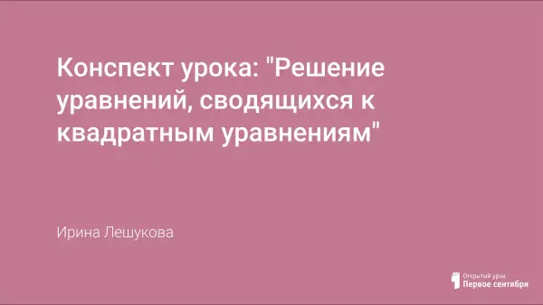 Цель урока: формирование умения решать уравнения, сводящихся к квадратным уравнениям.