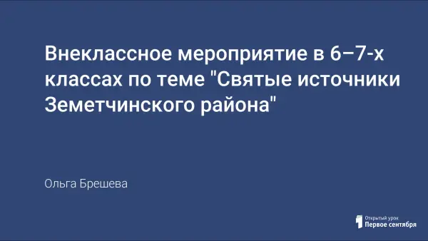 Внеклассное мероприятие в 6–7-х классах по теме "Святые источники Земетчинского района"