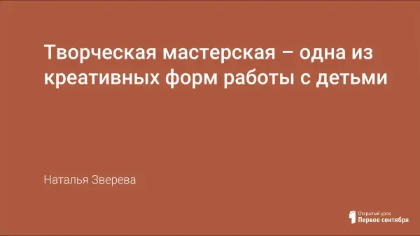 Целью работы в творческой мастерской является сохранение в ребенке творческого начала, оказание помощи в реализации его возможностей, способствование развитию самостоятельности и творческой инициативы. Работа строится поэтапно, где каждый этап условно соответствует возрастному периоду, начиная со средней группы. Внутри этапов работа ведется циклично.