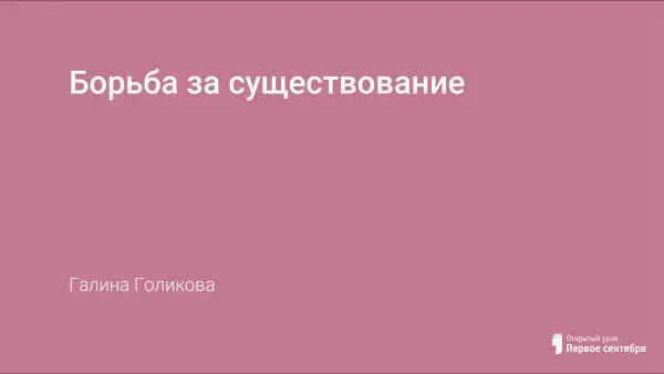 Урок на тему «Борьба за существование» входит в раздел «Механизмы эволюции» и опирается на учение Ч.Дарвина. Примеры, приводимые учителем, дают возможность учащимся самим делать выводы по теме урока. Презентация составлена с конкретными примерами, таблицами, проблемными вопросами и слайдами для закрепления и первичной проверки знаний.