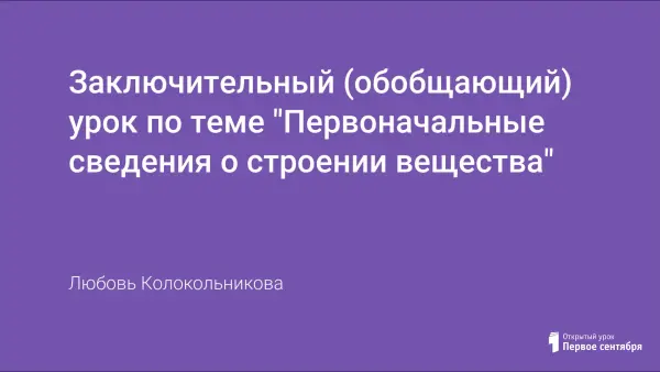 Чтобы понимать физические явления, необходимо знать строение вещества. Первые физические знания – это основа успеха в познании мира. Поэтому после прохождения темы «Первоначальное строение вещества» обобщающий урок по данной теме необходим, он систематизирует знания учащихся о строении вещества, сравнивает свойства и выявляет особенности молекулярного строения одного и того же вещества в разных агрегатных состояниях.